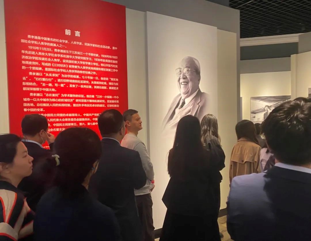在费孝通江村纪念馆,青年员工认真聆听讲解,深入了解费老一生的光辉事迹,深刻体悟费老矢志不渝的家国情怀、志在富民的孜孜追求和实事求是的科学态度。随后,大家漫步江村,回顾费孝通先生二十六次到访江村的经历。行行重行行,费老一生行走在田野之中,他在江村追访研究中所秉承的始终扎根于社会生活实践、“到实地去”探究中国社会文化变迁,已经成为调查研究的“江村范式”。通过此次参观活动,青年们也深刻领会到调查研究既是一个“从群众中来,到群众中去”的过程,也是一个发现问题、分析问题、解决问题的过程。