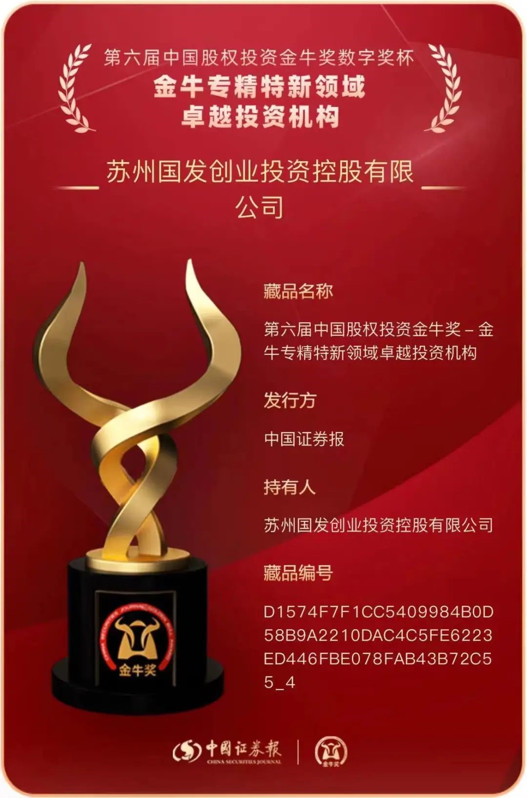 12月20日,由中国证券报主办的“硬科技高质量创未来”2022中国股权投资发展论坛在南京举行,论坛同步举办了第六届中国股权投资金牛奖、第一届中国信托业金牛奖颁奖典礼。国发创投荣获 “三年期金牛私募股权投资持续卓越机构”和“金牛专精特新领域卓越投资机构”。